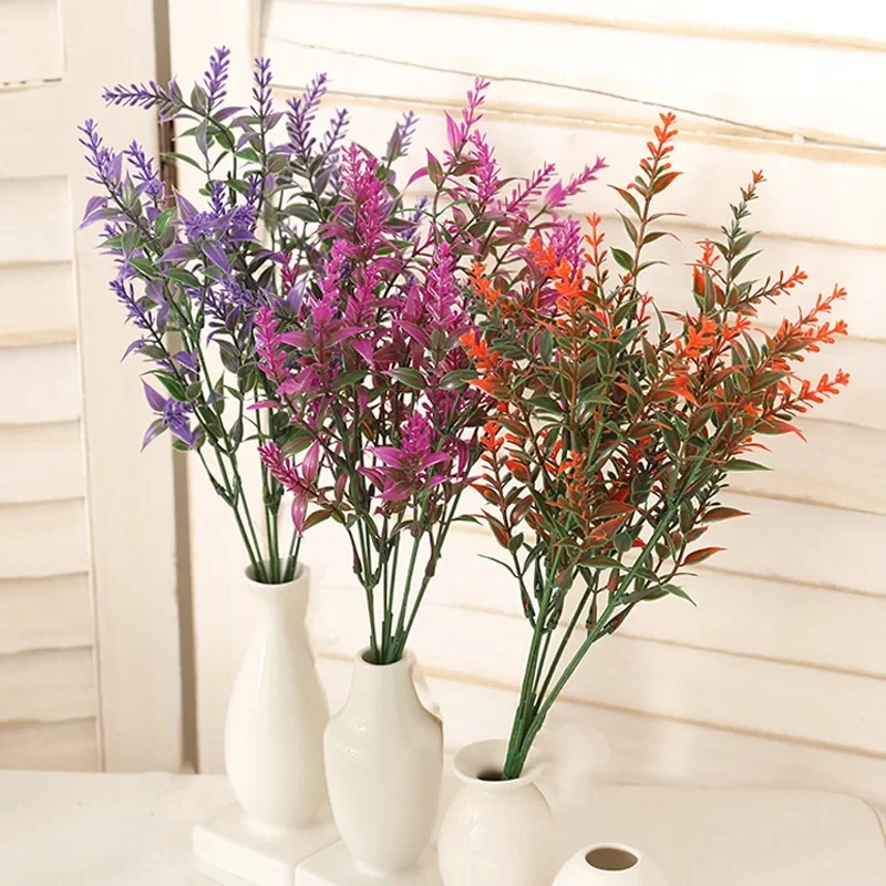 • Artificial Plastic Plant For Vase Fake Lavender Bundle Indoor Outdoor Home Party Garden Outdoor Room Wedding DIY Decoration Gift