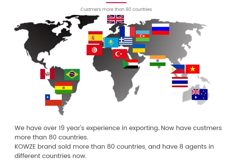 Dedicated to strict quality control and thoughtful customer service,our experienced team members will always do their best to meet customers satisfaction. That is why we are doing well all around China. We also export to more than 80 countries such as Russia, Turkey, Poland, Greece, UK, Brazil etc.
