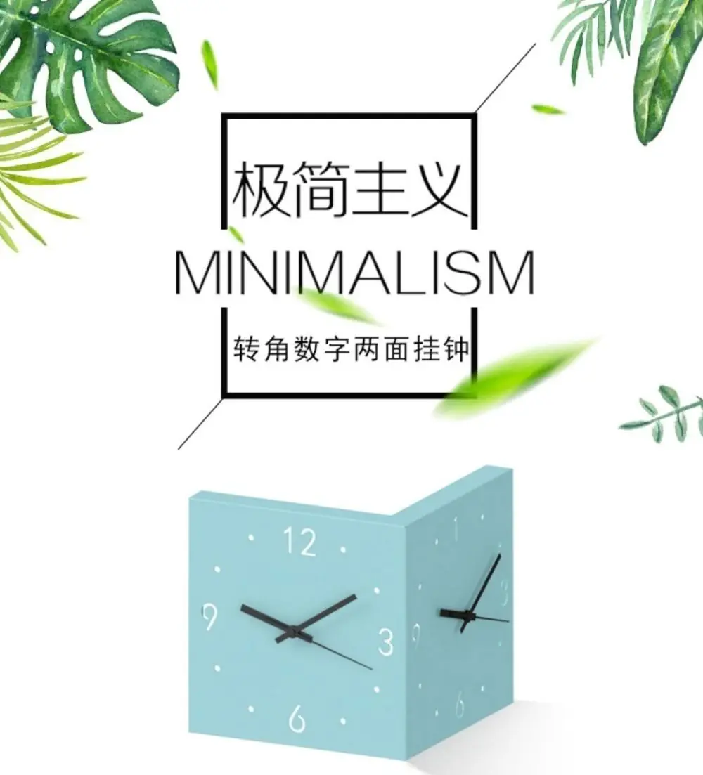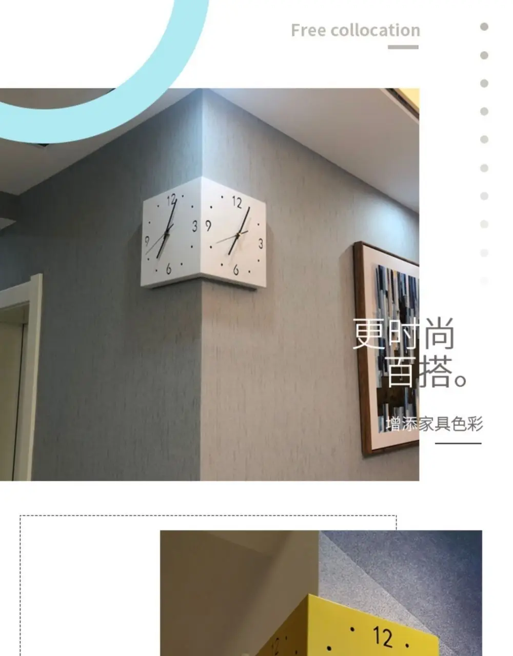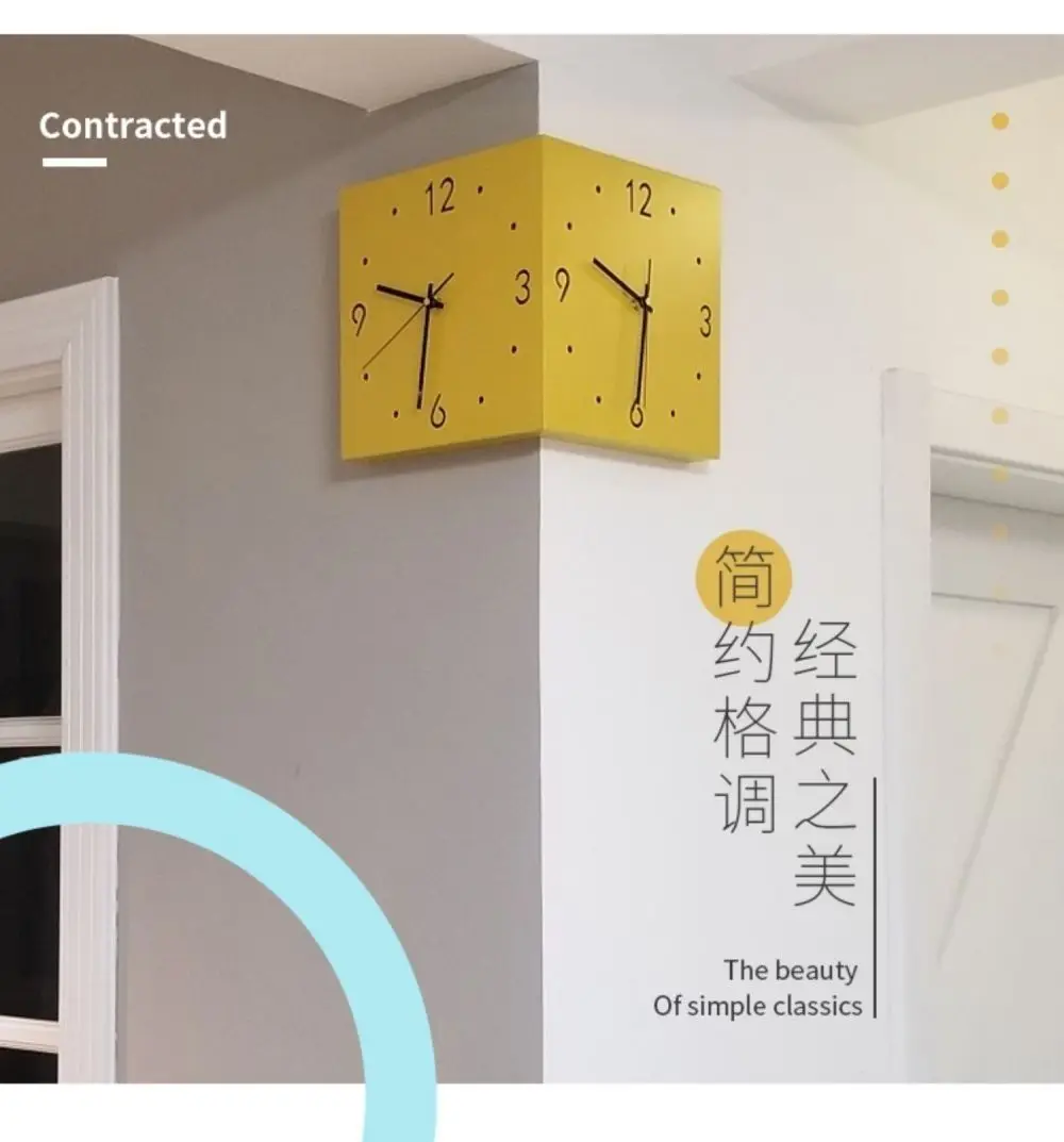 Fashion simple corner clock steel sun corner double-sided wall clock digital hollow mute free punching double-sided wall clock