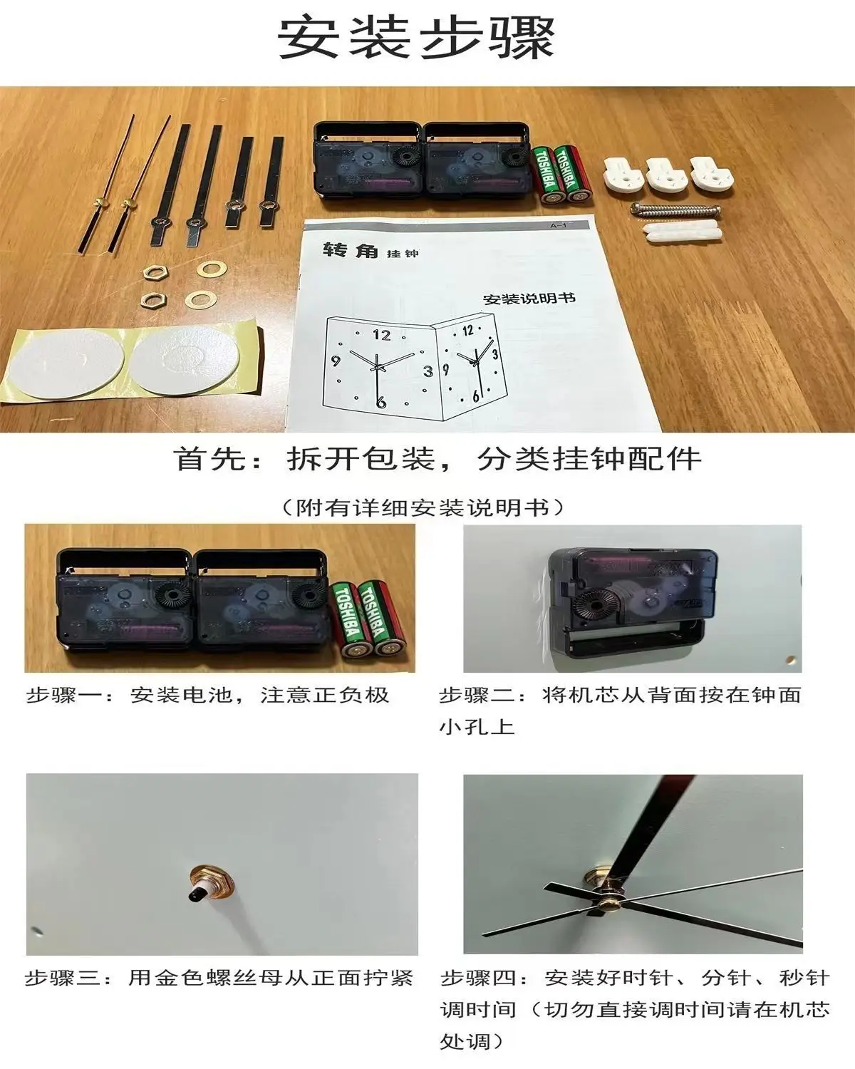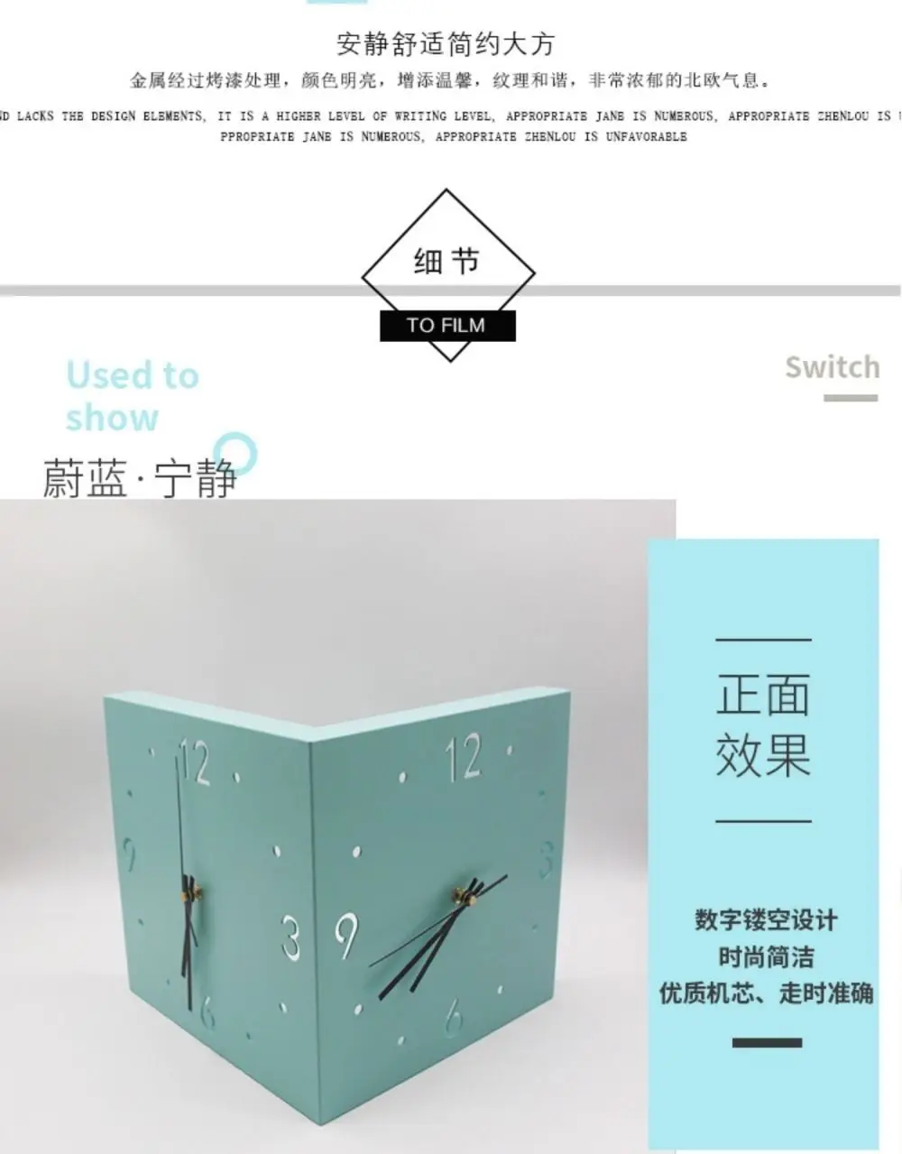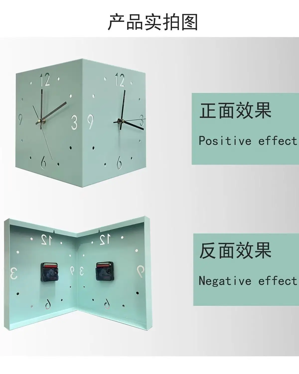 • Automatic Induction Lamp Luminous Corner Clock Square Living Room Simple Double-Sided Iron Digital Hollow-out Two-Side
