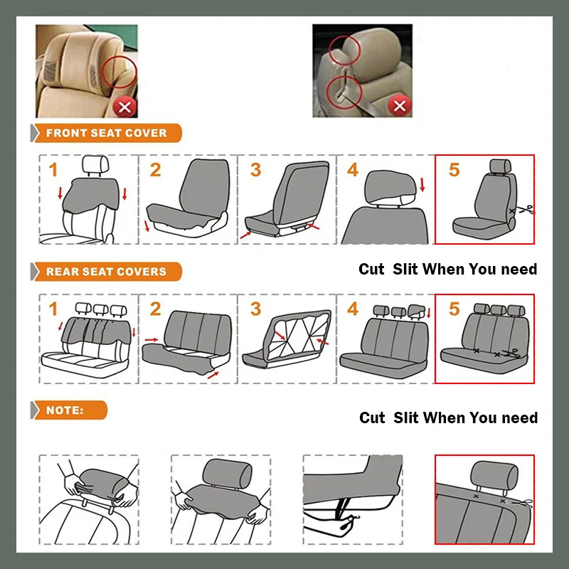 Rear seat covers have three zippers to accommodate 40/60 split, 40/20/40 split and 50/50 split, cup holder / middle console is able to fold down by unzipping one of the zippers on the backrest cover