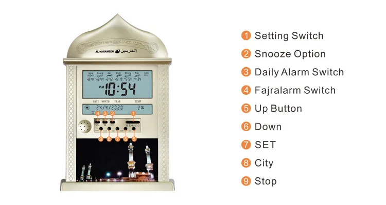6. The error of each group of prayer time may be adjusted, and each group of prayer time can be turned off at will