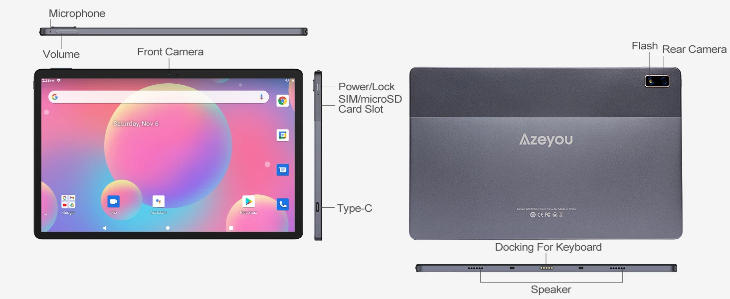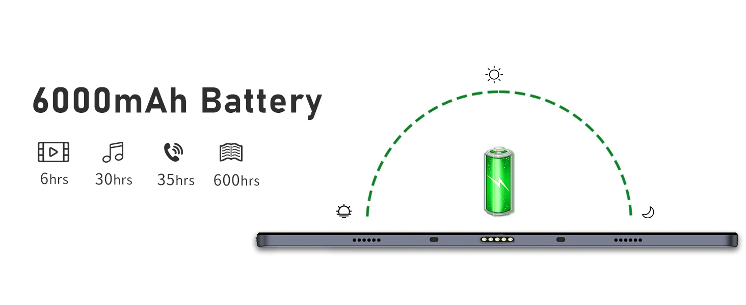 【Large Capacity Battery】Azeyou T20 tablet comes with 6000mAh battery, 6-8 hours of use on a single charge and fast charging via Type C port. Battery life may vary depending on network environment, usage patterns and other factors.