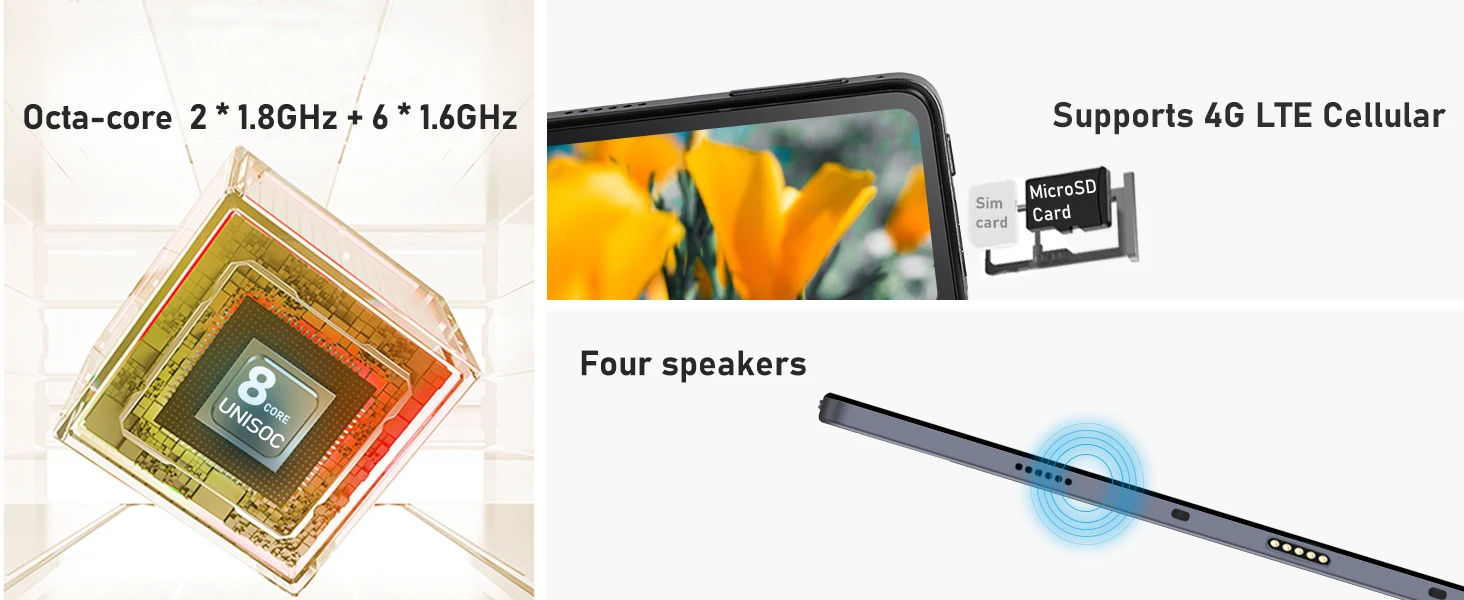 【4G LTE Cellular & 2.4G/5G WiFi】Azeyou T20 tablet is a phablet, comes with dual SIM card tray, supports 2.4G/5G WiFi and 4G LTE celluar, you can make call or surf the internet when there's no WiFi.