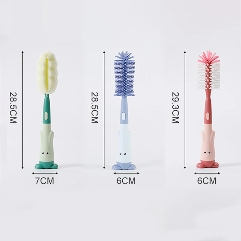 • Baby Bottle Brush 3-In-1 360 Degree Baby Silicone Cup Bottle Cleaning Brushes Set andheld Soft Head Food Grade Brushes