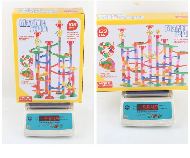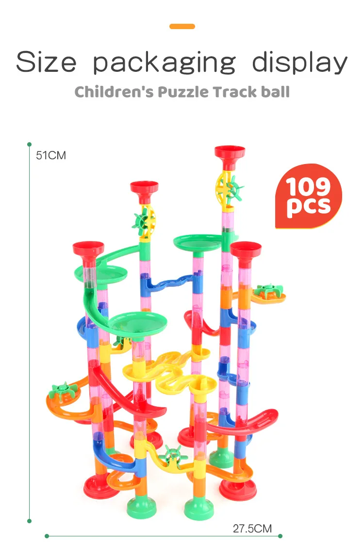 This marble race toy is a blast! The 109 /133 trace building blocks are a good educational toy for your family. The marble race track is a great article to teach children about the momentum and properties of gravity through marble running on the track. You can assemble them as you want, so you can let your children build the blocks differently each time with their imagination. This is a great game for your family.