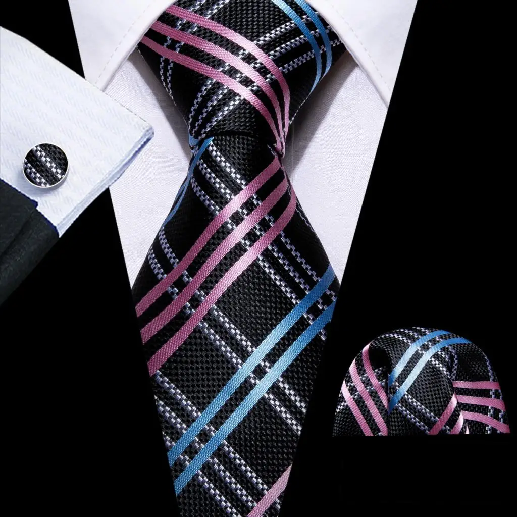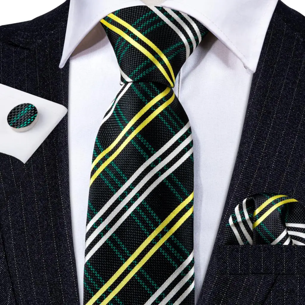 Choose Options Quick view Barry.Wang Plaid Silk Men Tie Hanky Cufflinks Set Checked Jacquard Necktie for Male Formal Casual Wedding Business Party Events $10.82 - $14.33