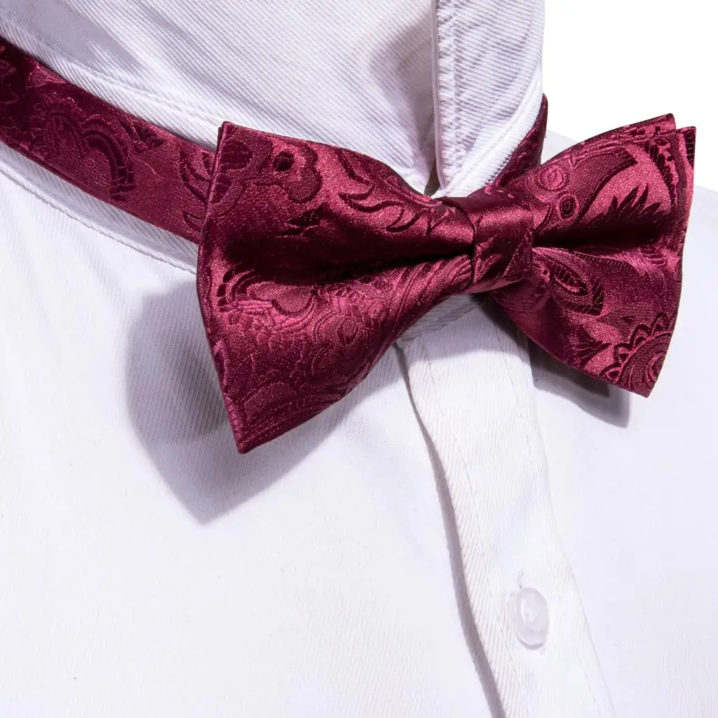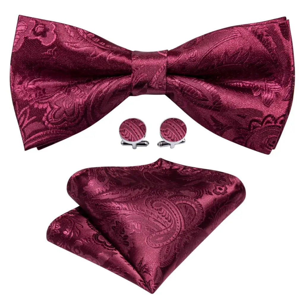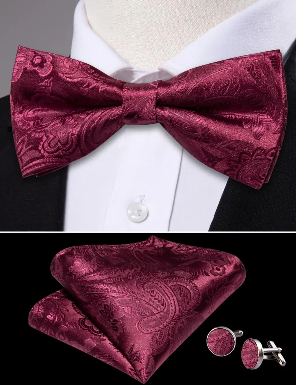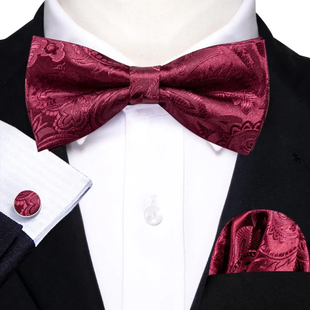 Choose Options Quick view Rose Red Burgundy Maroon Silk Mens Bow Tie Hanky Cufflinks Set Jacquard Pre-tied Butterfly Knot Bowtie for Male Wedding Business $62.09 - $64.87