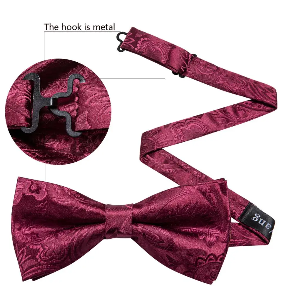 Choose Options Quick view Barry.Wang Silk Jacquard Paisley Mens Bow Tie Hanky Cufflinks Set Pre-Tied Bowtie Gold Red Green Pink Purple Wedding Business $57.85 - $60.12