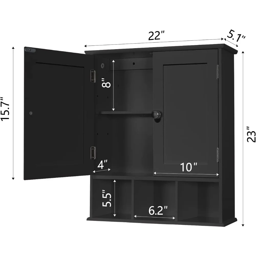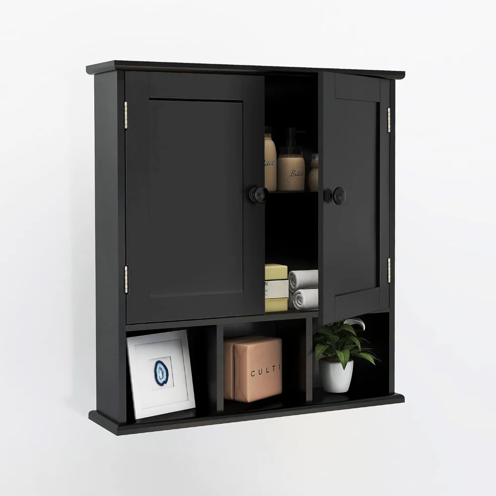 Want to design a space-saving and beautiful cabinet for your bathroom, kitchen or hallway? TaoHFE bathroom cabinet with 2 doors and 3 open shelves, this wall-mounted cabinet will bring style to your home. The combination of exquisite style and black color makes this medicine cabinet coordinate with various decorative styles.