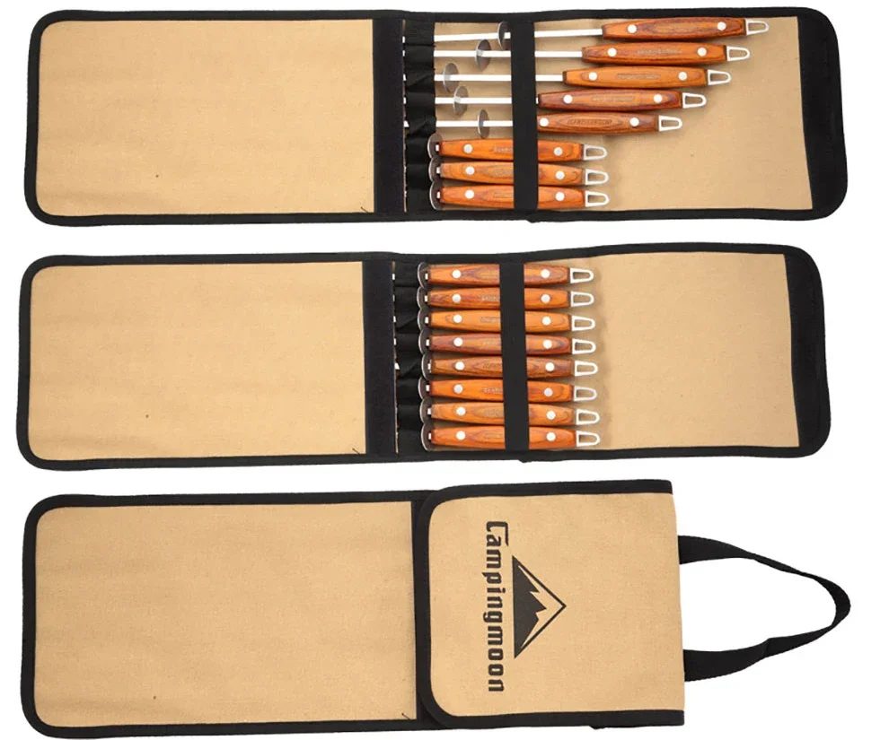 Product Type | Camping Outdoor Hiking Stainless Steel BBQ Skewers Grill Flat Barbecue Skewers Tools Reusable BBQ Sticks With Wooden Handle | |||