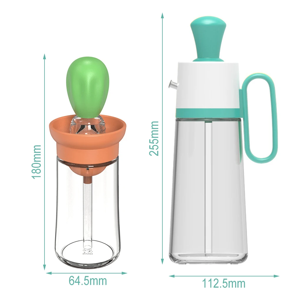 2 in 1 Oil Bottle: Newly upgraded oil spray bottle, oil bottle and oil brush integrated design, just squeeze the silicone straw head to apply oil easily.
