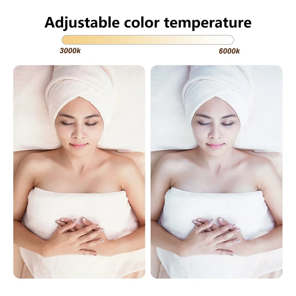 5. 3000-6000K Color Temperature: Equipped with a wired control button and touch-sensitive keys, this half-moon beauty salon led light offers seamless brightness adjustment and allows you to choose between 3000K (warm light) and 6000K (white light) color temperatures. Customize the lighting to suit your needs and preferences.