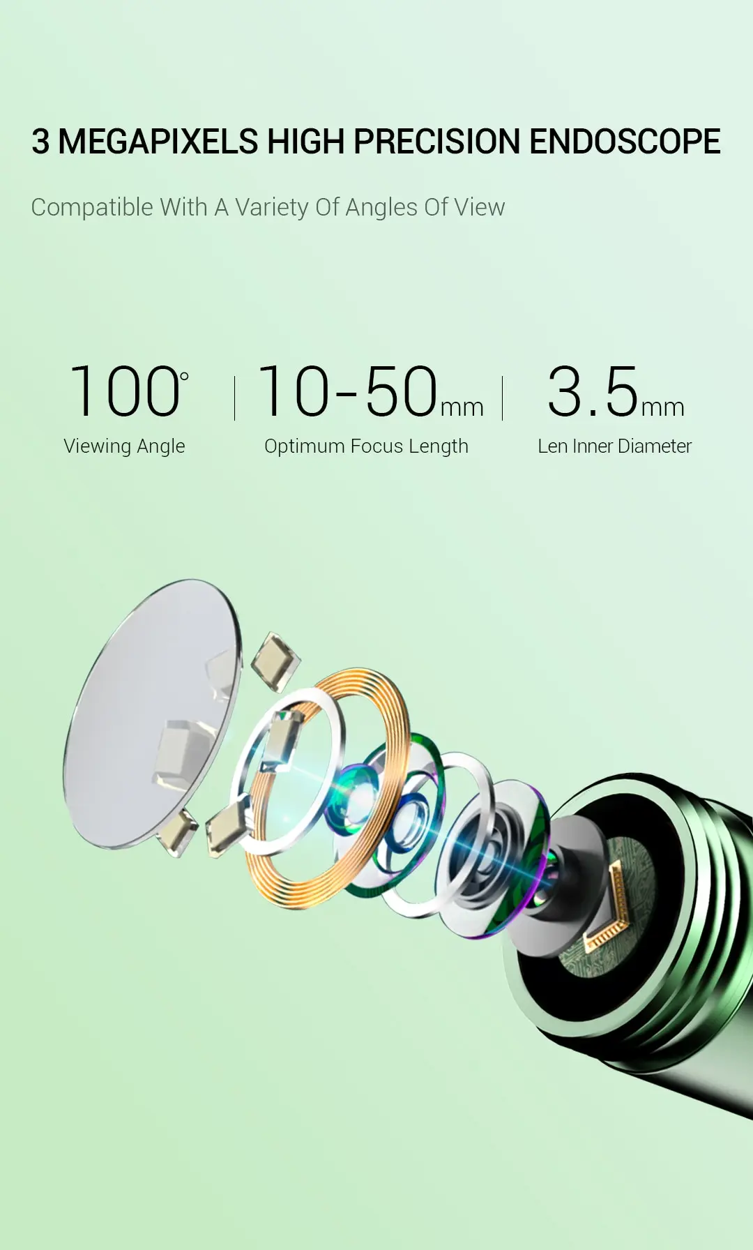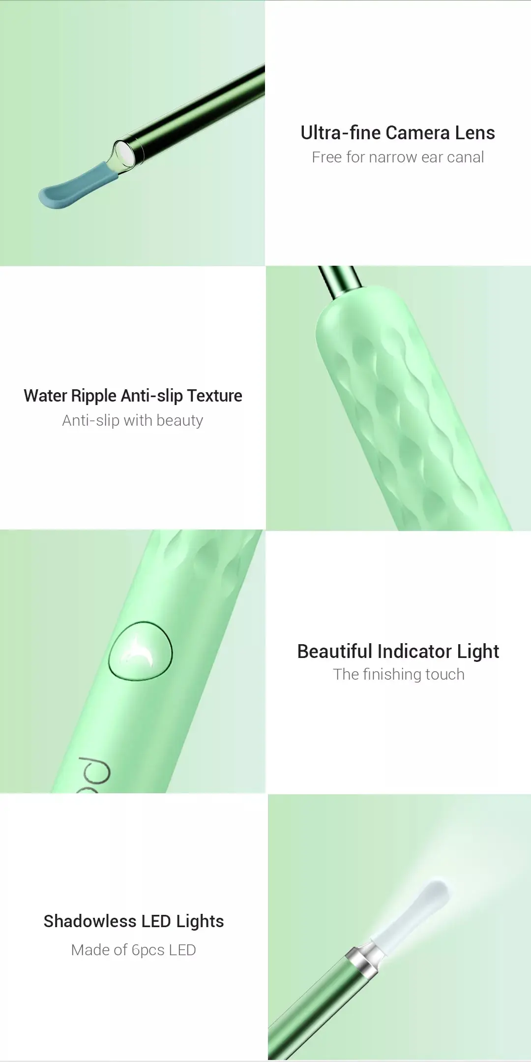Rapid WiFi visual connection. No connection is required to open picking ears. Use optical lens and high performance 300W pixel. The CMOS sensor has a clear picture, 20X amplifying ear canal & 100° viewing angle. 13 lens combination & 6 LED lights. IP67 waterproof lens. Water washable. Adapt to dry ear, oil ear and other complex environment. 3 axis smart directional gyroscope quick positioning, screen is not bias & shake. High-end OV chip video coding technique, hand-eye synchronous exciting picking! Strong WiFi signal, penetrating power, avoid delay. More safety protection. Earpick head buckle, over-hot earpick protection, timing automatic shutdown, children lock and anti frost cracking protection. Smart constant temperature control. Prevent low temperature & ear burning . Otoscope: 25°C non-inductive temperature. Earpick body: 32°C palm's temperature. Long endurance. Built-in 185mAh large capacity battery. Picking once a week for 10 minutes, can use about 30 days.