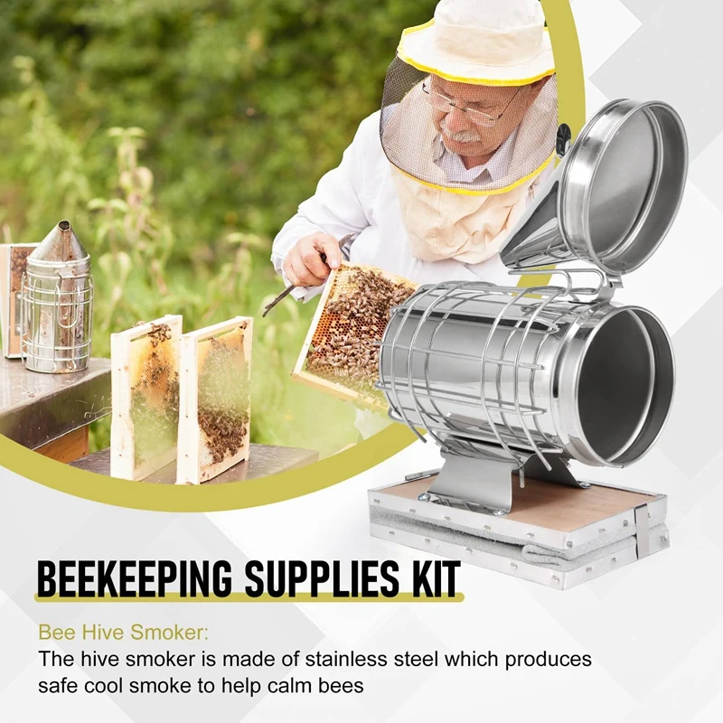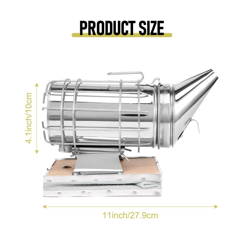 Bee Hive Smoker: The hive smoker is made of stainless steel which produces safe cool smoke to help calm bees, protect from stings during hive maintenance; heat shield protective guard that surrounds the smoker help prevent burns