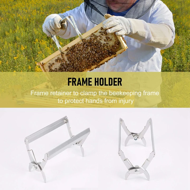 Beekeeping Supplies Kit: This complete bee keeping set includes ( Hive Smoker, Beehive Brush, Frame Holder, Needle Honey Knife, Frame Lifter, Clip, Wire Embedding, King Marker, Goatskin Leather Beekeeping Gloves)
