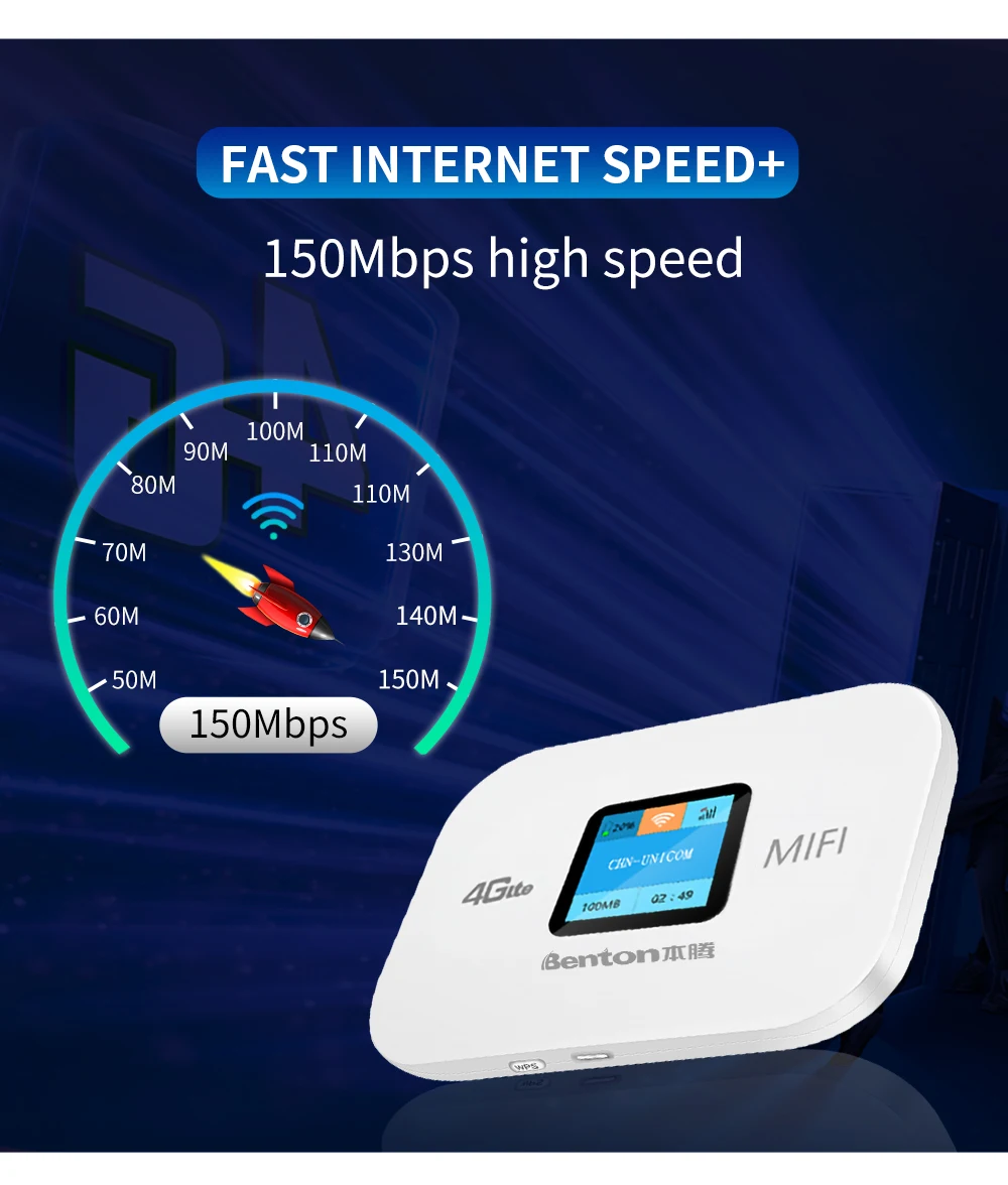 Benton Unlock 4GLte WIfi Router Hotspot Wireless Pocket Mifi Sim Card Plug&Play Mobile 150Mbps High Speed Travel 3000mAh Battery