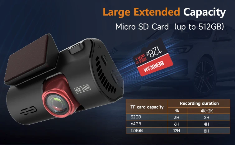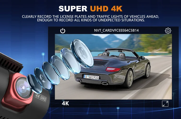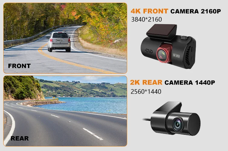 4K HD Front Camera, take the Car DVR more clearly; With 2K real camera, will Present more real HD effect; Extremely reproducing high-quality images for better shooting results;