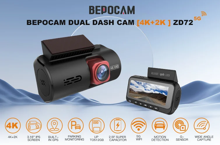 • BEPOCAM ZD72 4K Dash Cam Built-In GPS 5G WiFi Car DVR Camera With Rear Cam For Vehicles 4K+2K Dual Channel 170FOV Auto Recorder