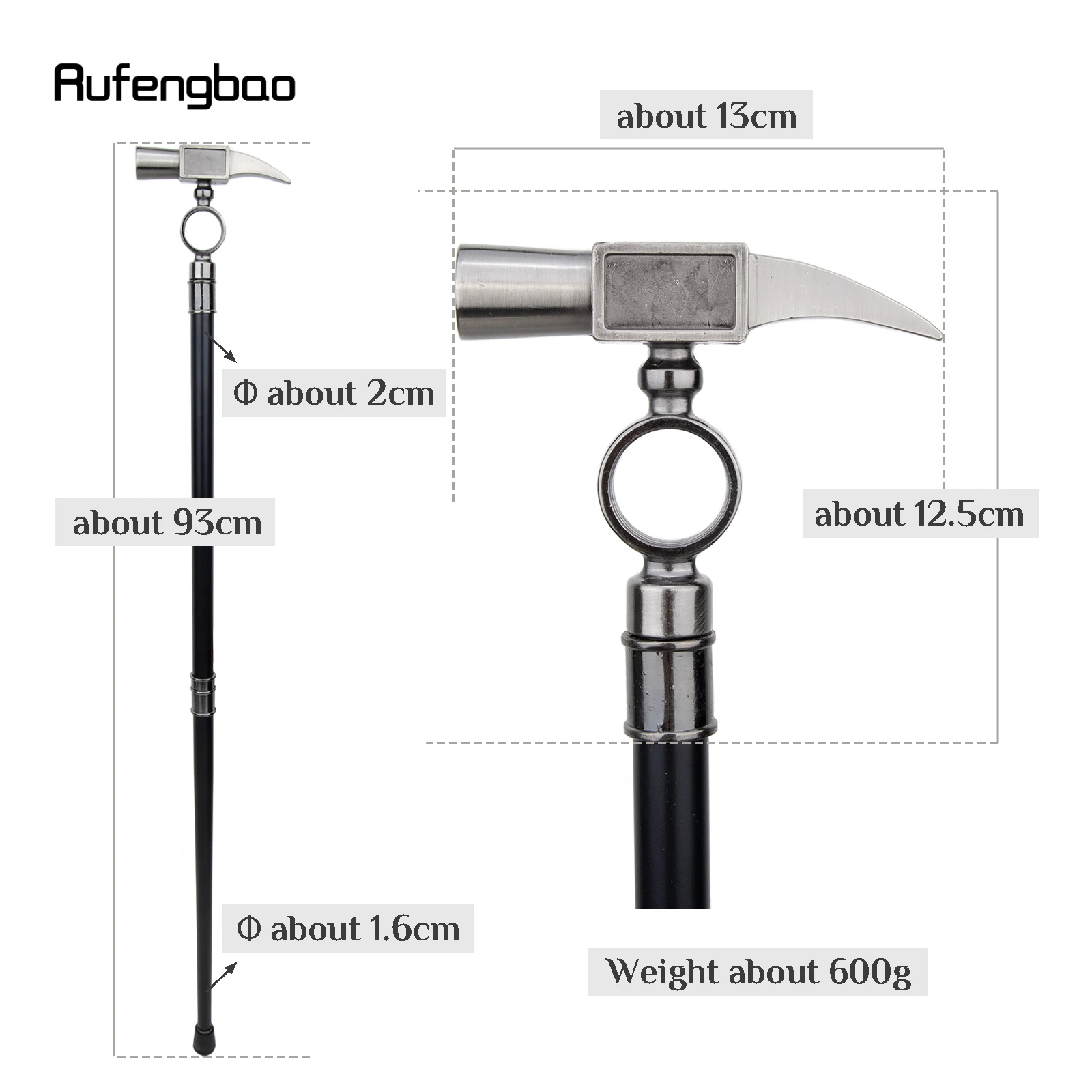 • Big Hammer Fashion Walking Stick Decorative Vampire Cospaly Vintage Party Fashionable Walking Cane Halloween Crosier 93cm