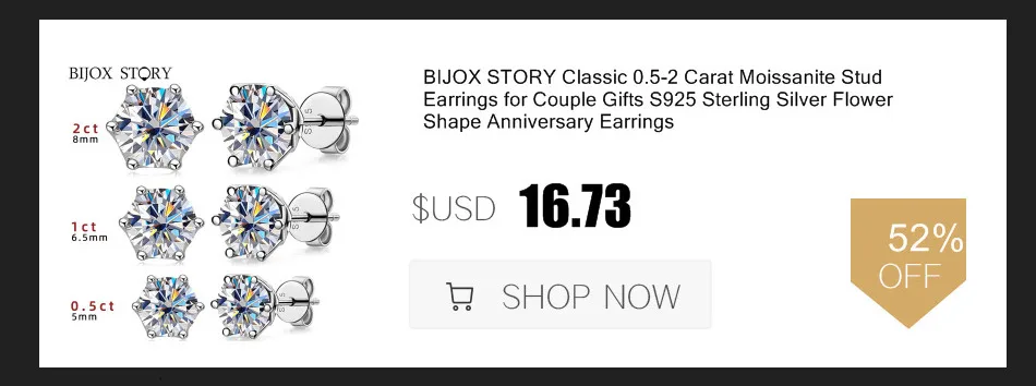 BIJOX STORY 0.5-2ct Multi Colors and Cuts Moissanite Stud Earrings S925 Sterling Silver Fine Jewelry Earrings For Women Wedding