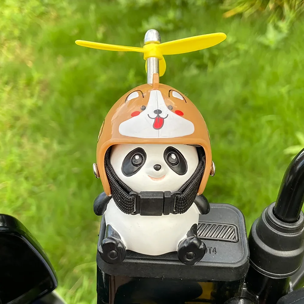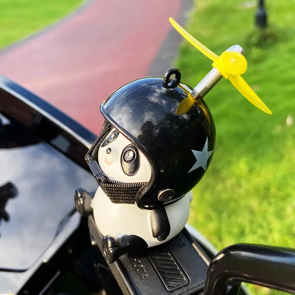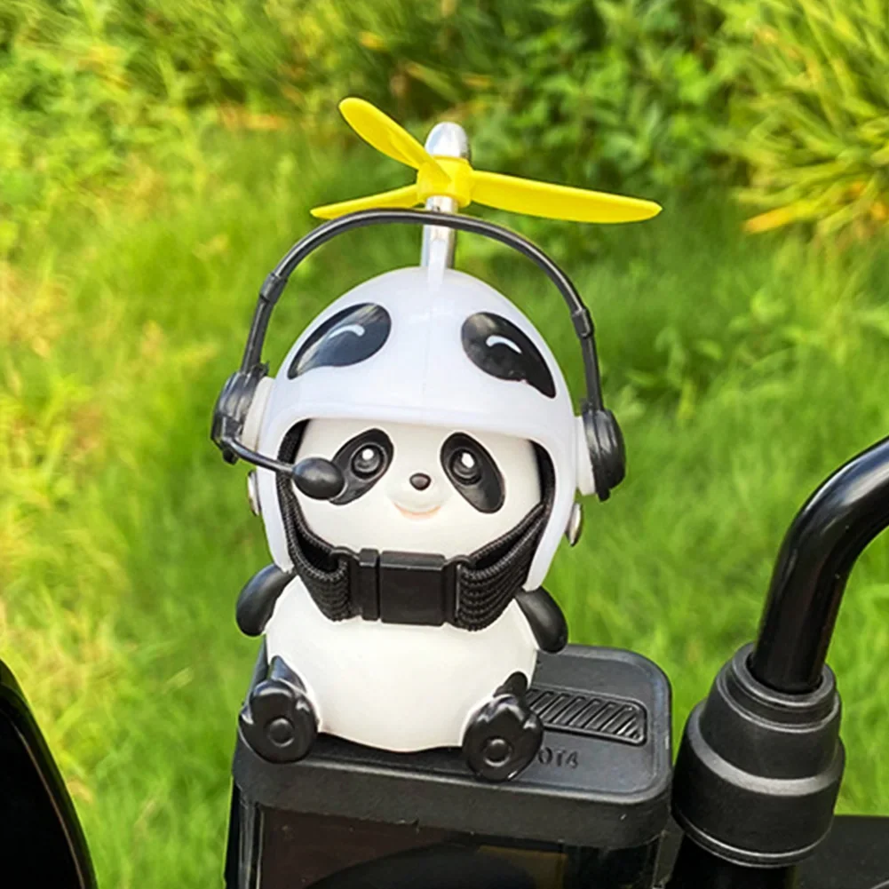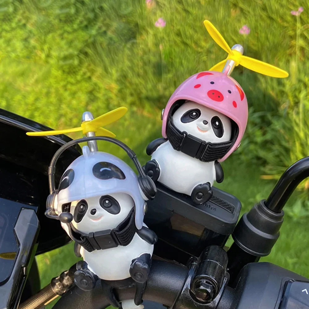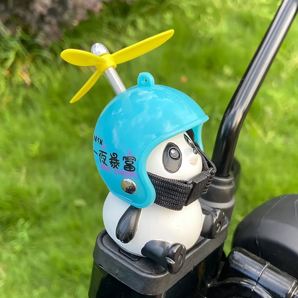 Bike Electric Cute Panda Cartoon with Helmet Airscrew Ornaments Toy Motorcycle Handlebar Decoration Riding Equipment Accessories