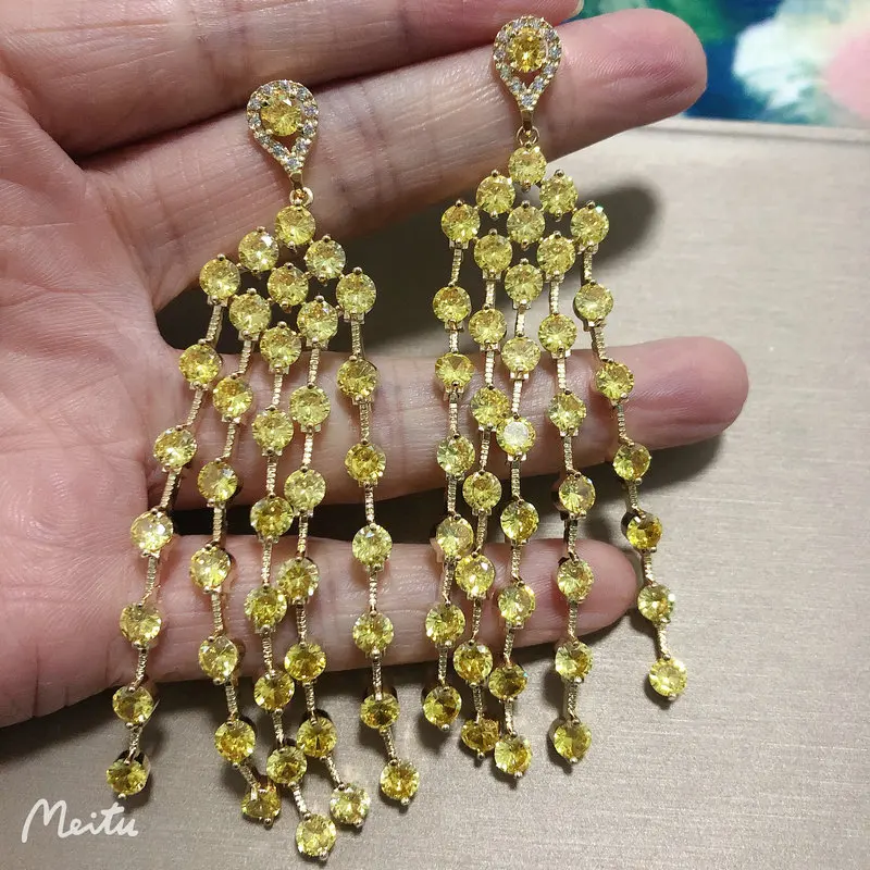 Choose Options Quick view Bilincolor Micro Set Zircon Water Drop Tassel Earrings $349.68 - $351.00 Length:7cm