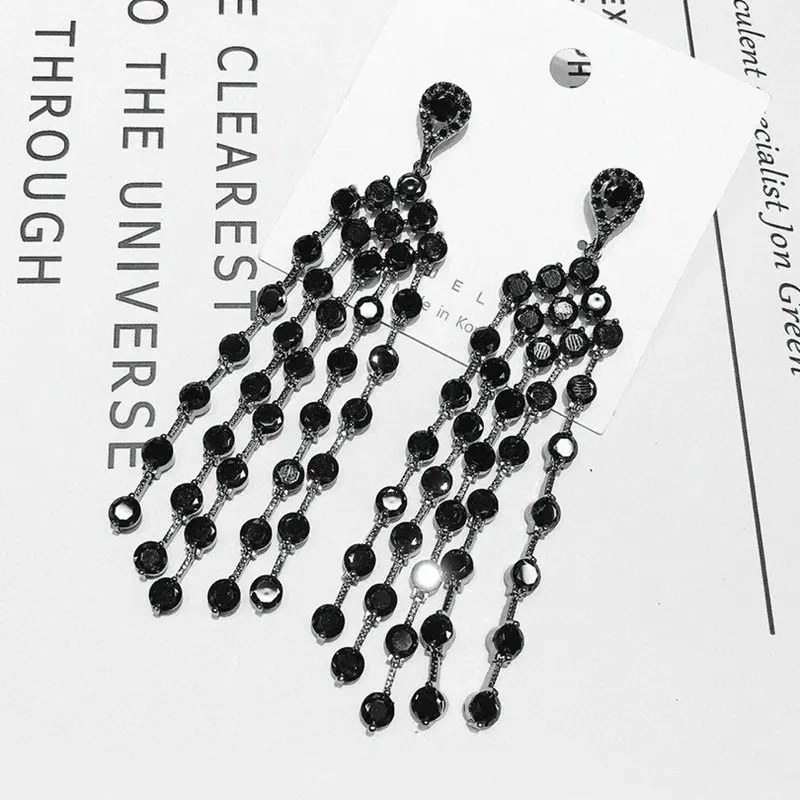 Choose Options Quick view Bilincolor Black Card Heavy Industry Micro Inlaid Zircon Tassel Mesh Earrings for Women $356.11