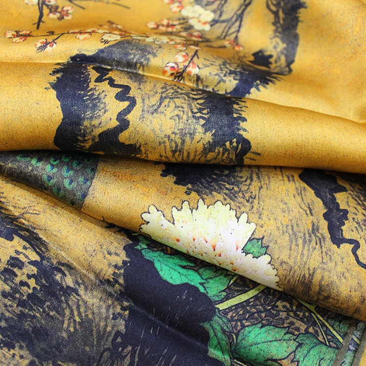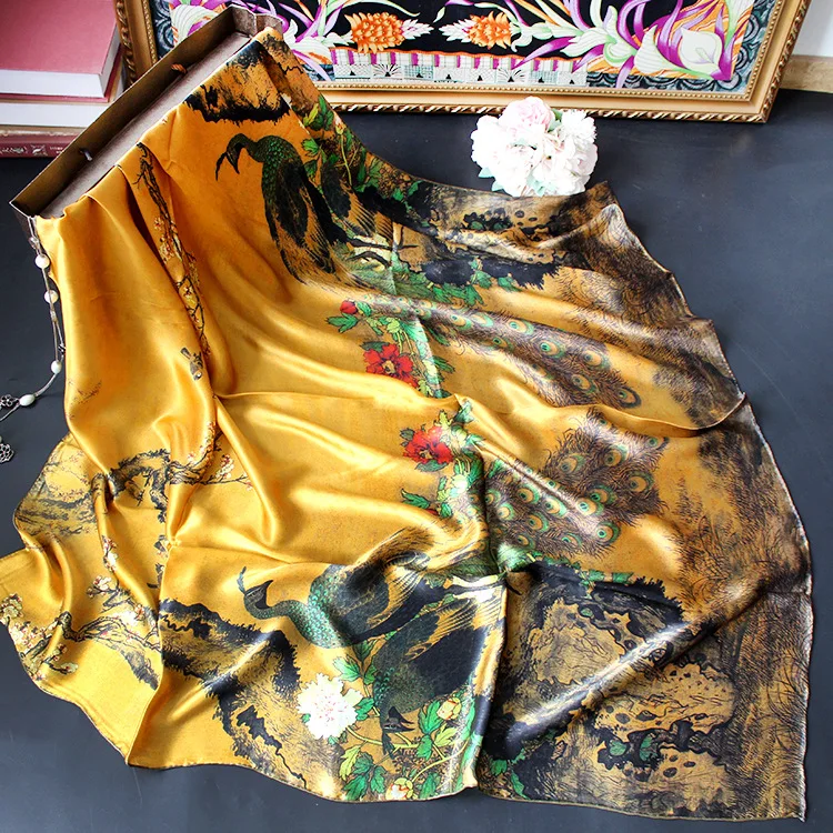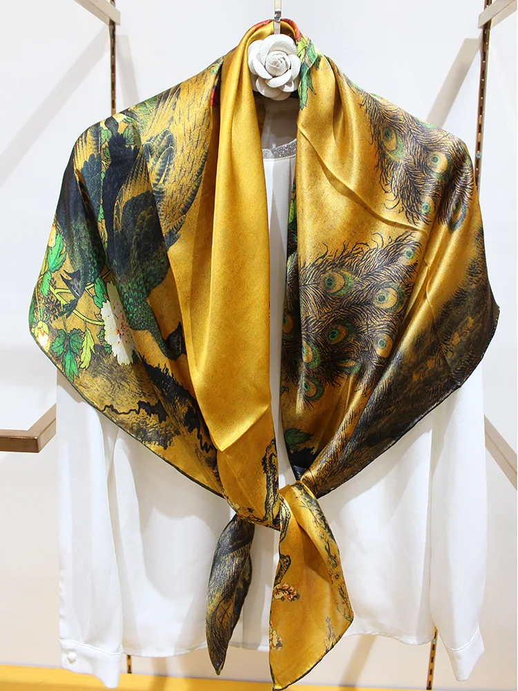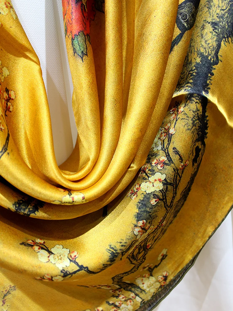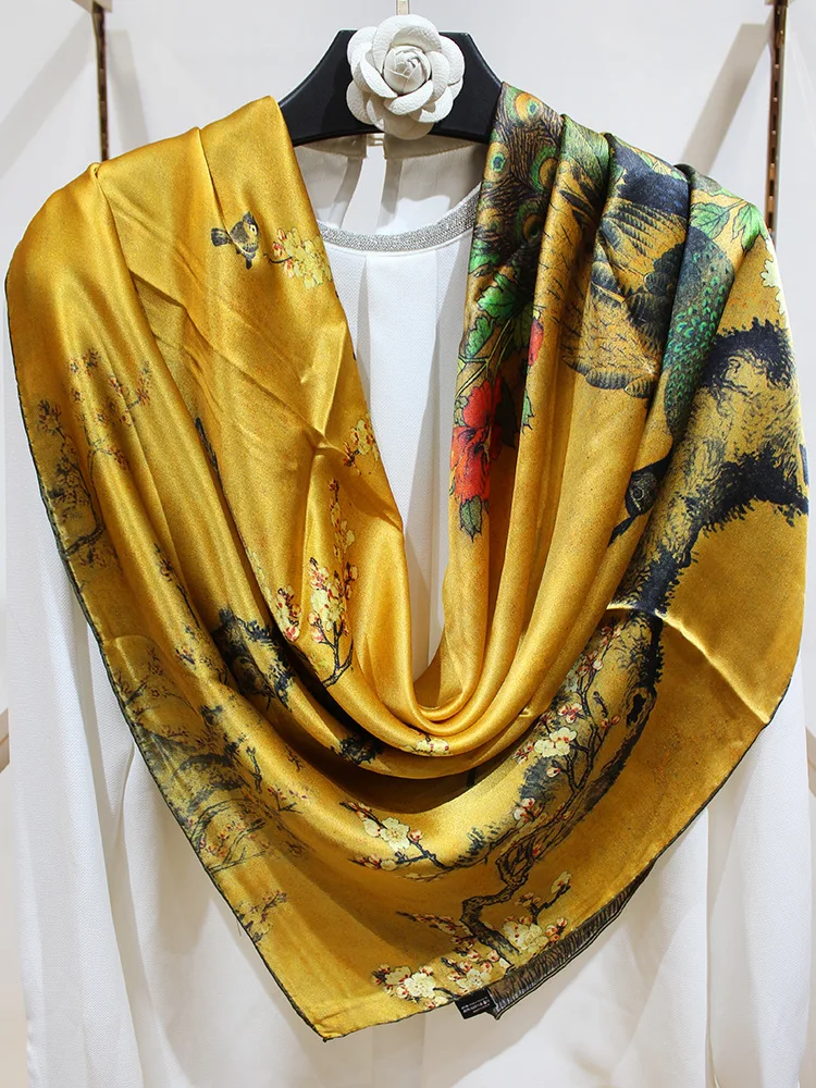 BirdTree 100%Real Silk Square Scarf,Chinoiserie Plain Crepe Satin Hand Crimping,Comfortable Mom's Gift Shawl,Spring
