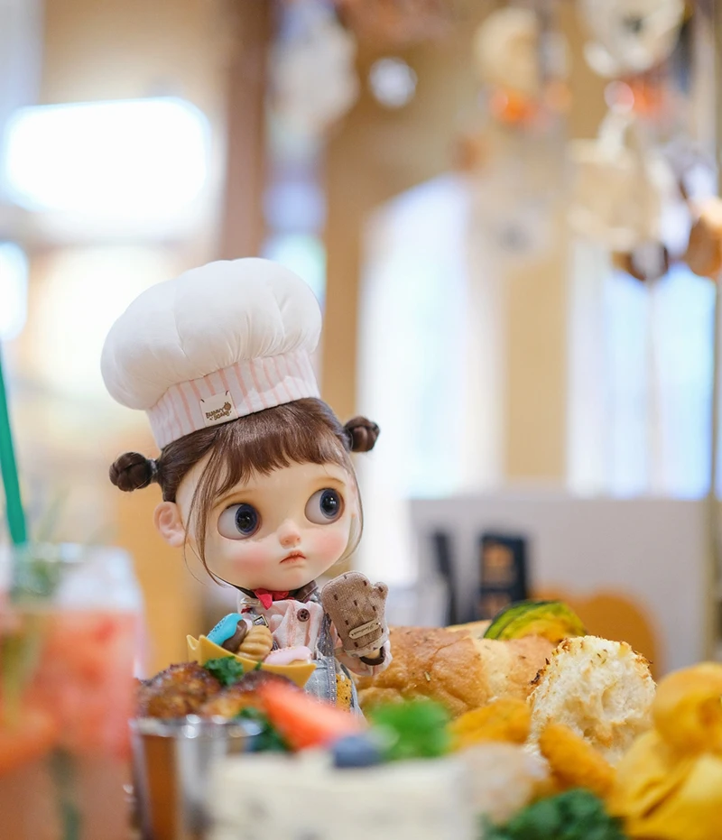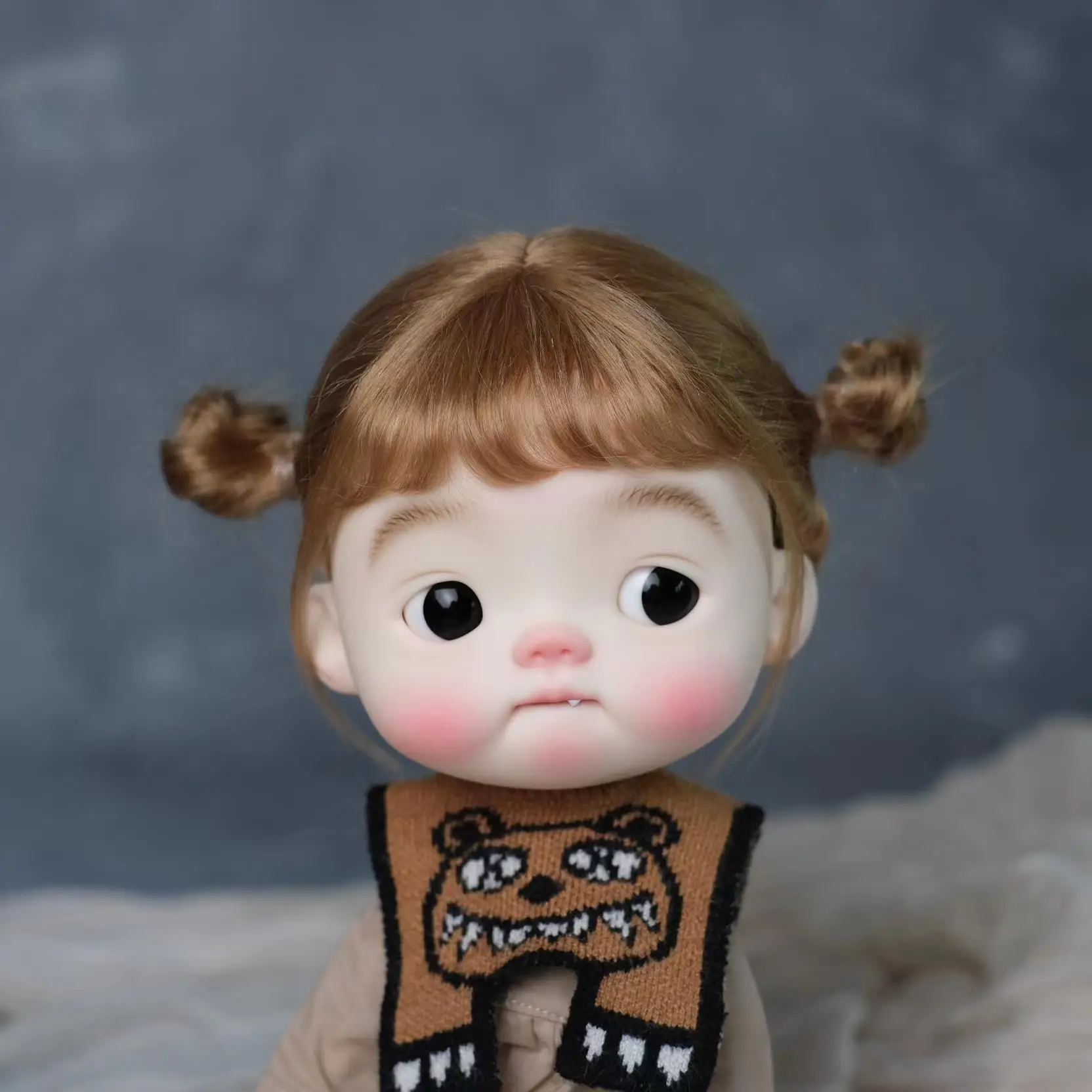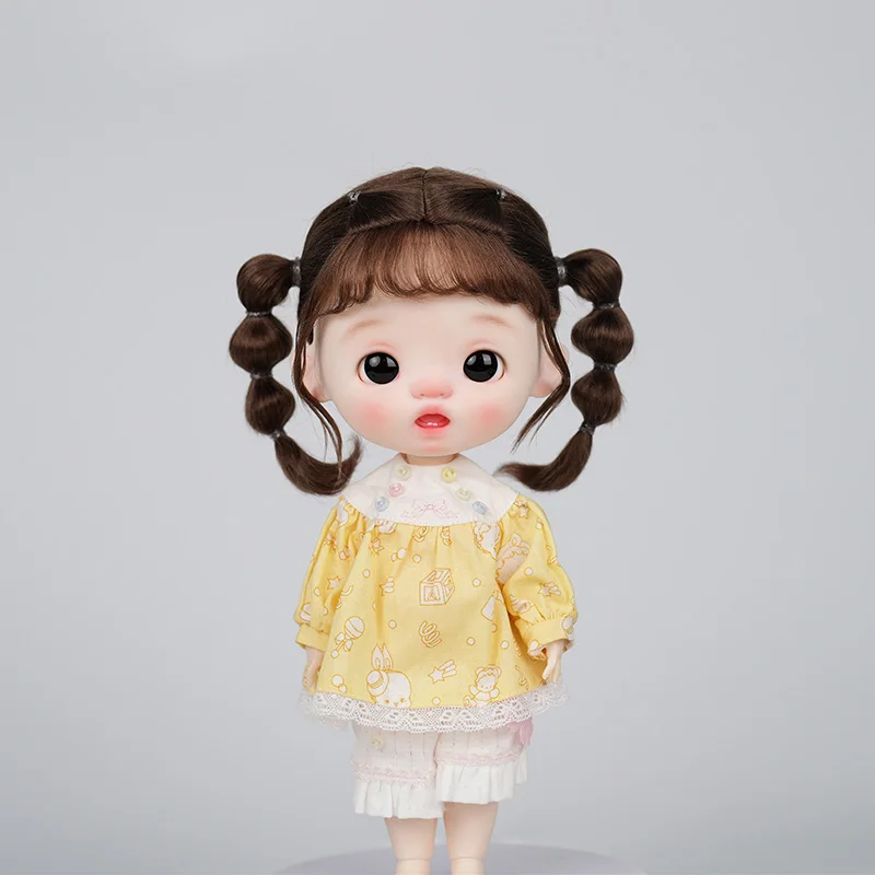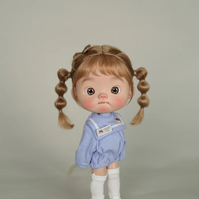 • BJD Wig Big Head Dot Blyth Wig Soft Mohair Bangs Braid Wig half ponytail Short Hair Long Wavy Hair Fit 9-10 Inches Head