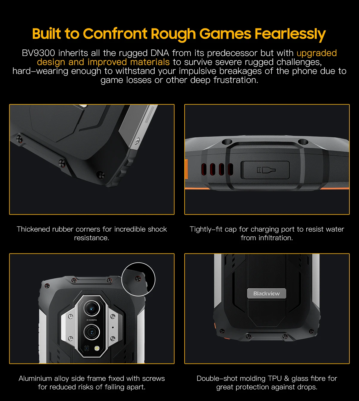 Accessories: 1 x BV9300 Smartphone 1 x EU Power Adapter(33W) 1 x USB cable 1 x User Manual | Network: 2G GSM:850/900/1800/1900MHZ 3G WCDMA:B/1/2/4/5/8 3G CDMA:BC0/BC1/BC10 4G FDD:B1/2/3/4/5/7/8/12/13/17/18/19/20/ 28A/28B/25/26/30/66 TDD:B34/38/39/40/41 | |||