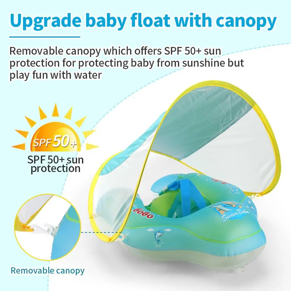 2.Anti-Rollover Design: This Baby Floats for Pool with Canopy adopted several safety designs. With rollover prevention design, its balance performance has been greatly improved balance. It keeps stable even when your kids move up and down.