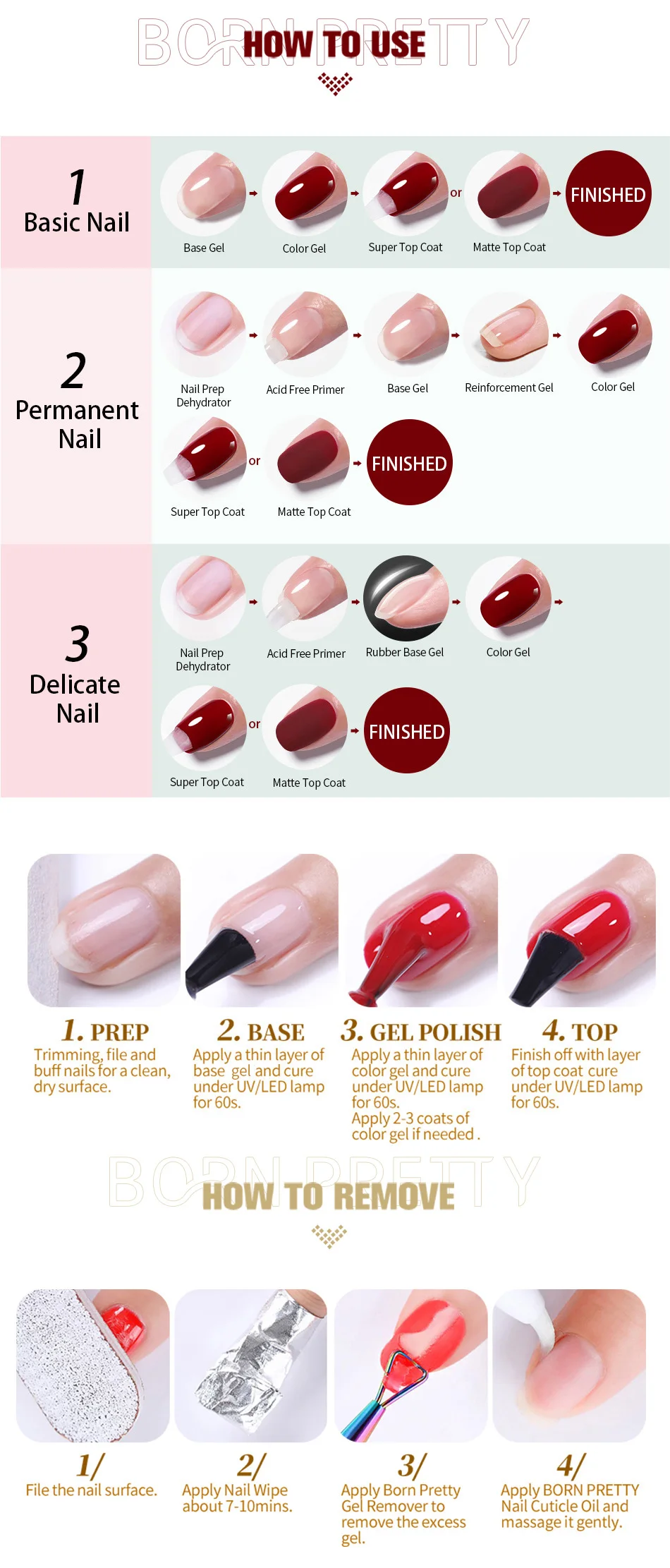 Step 3.Apply Base Gel first, which can make polish lasting longer, cure with UV lamp or LED lamp. (Necessary)