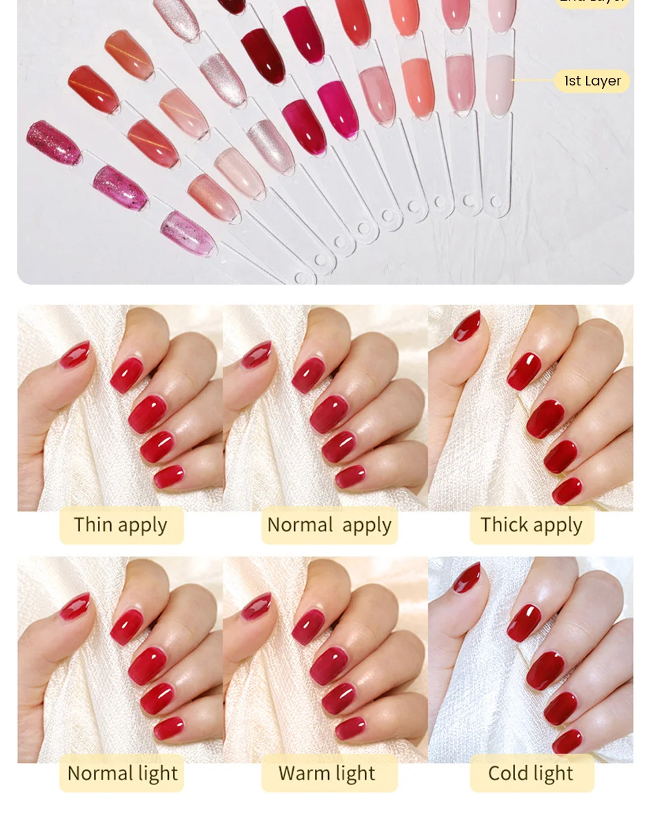 Step 4. Apply first layer of color gel directly, cure with UV lamp for 2 minutes or cure with LED lamp for 60 seconds.
