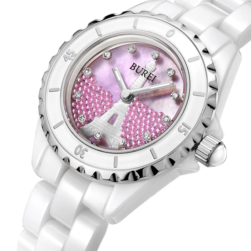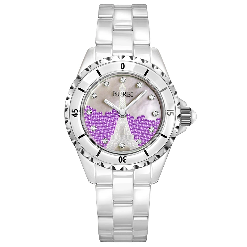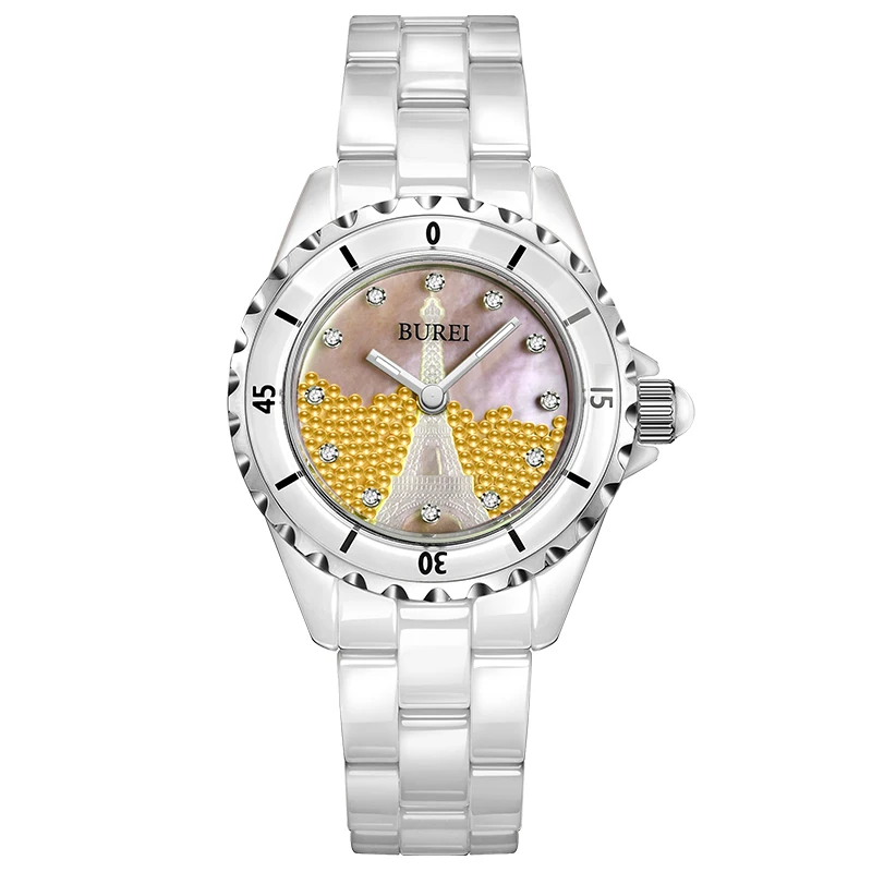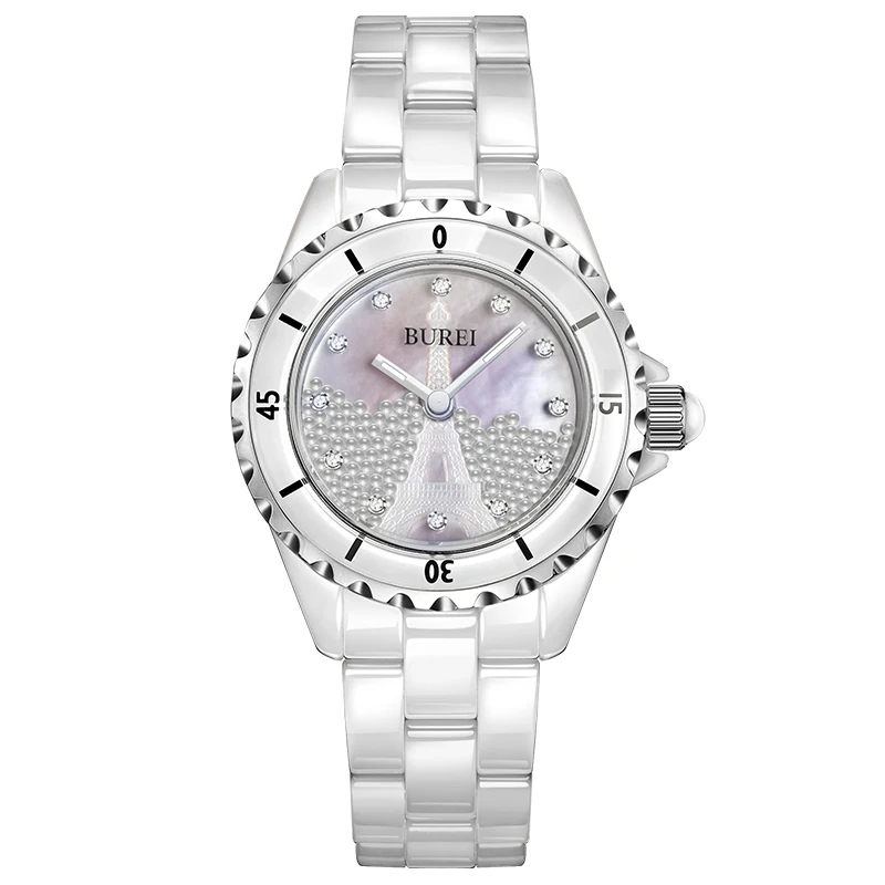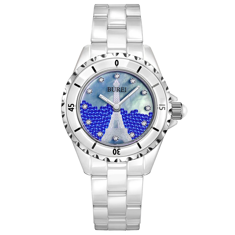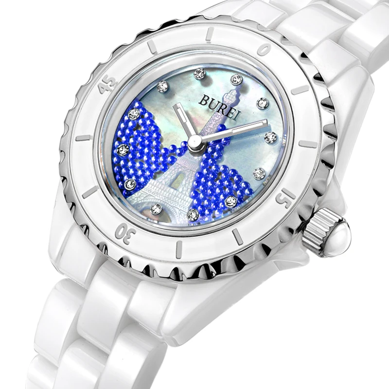 BUREI Brand Ladies Fashion Ceramic Bracelet Watch Women Luxury Waterproof Casual Crystal Quartz Wristwatch Relogio Feminino 2022