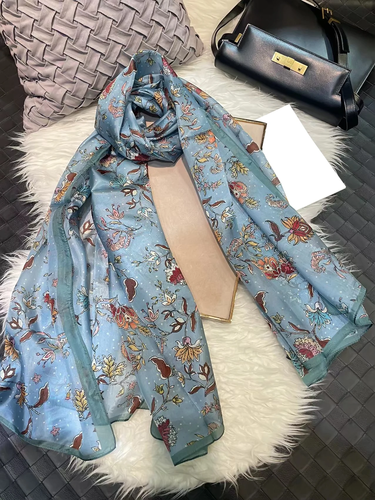 BYSIFA| Light Green Silk Scarf Ladies Fashion Spring Summer Floral Beach Scarves Shawls Fall Winter Long Scarves Wraps 180*110cm