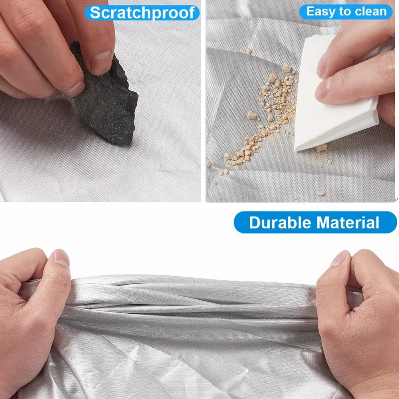 -Made of High-density Polyester Fabric ans silver coating can enhance waterproof function and protect surface of vehicle from being scratched, sliver coating of the car will not cause any damage to paint.