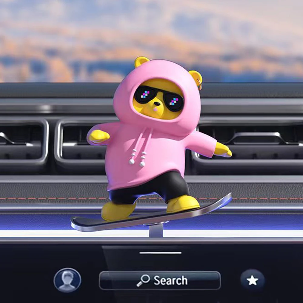 Mini Multicolor Cute Anime Car Center Console Ornaments Skateboard Bear Car Rearview Mirror Decoration Interior Accessories