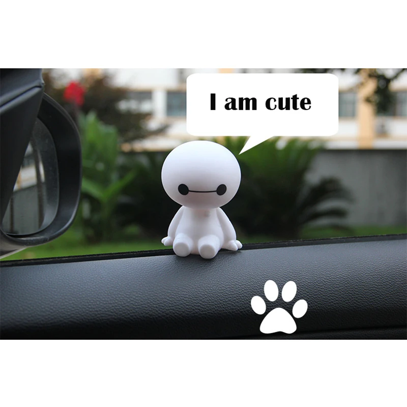 For cartoon plastic Baymax robot shaking head figure decoration car ornament. Not easy to damage. Tarnishing and requires minimal maintenance in order to keep it looking like new.