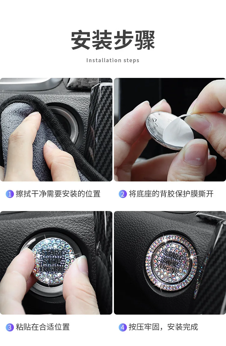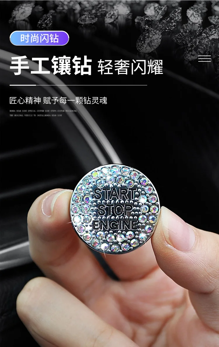 Choose Options Quick view Car One-start Button Diamond Decoration Stickers Interior Ignition Starter Switch 3D Ring Rhinestone Bling BlingSticker $61.44 - $75.92 Description:The trim ring is used to decorate the car start button. Simple installation, beautiful appearance.It's the right size for most models.Installation of the fit, the full protection of the...