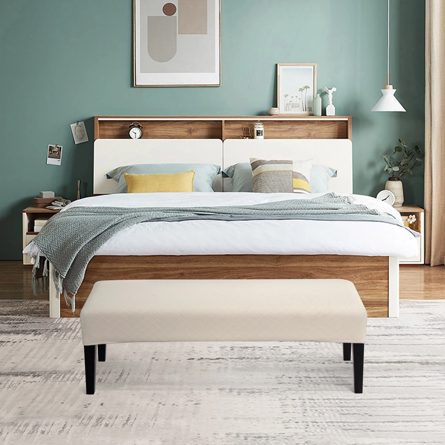 Fashion Classic rhombic lattice jacquard fabric design upgrades your older upholstered bench to give it a more sophisticated look and protect benches from scratches, spills, and stains.not only keep your new bench from getting dirty and slight scratches, but also giving your old damaged bench a new look.