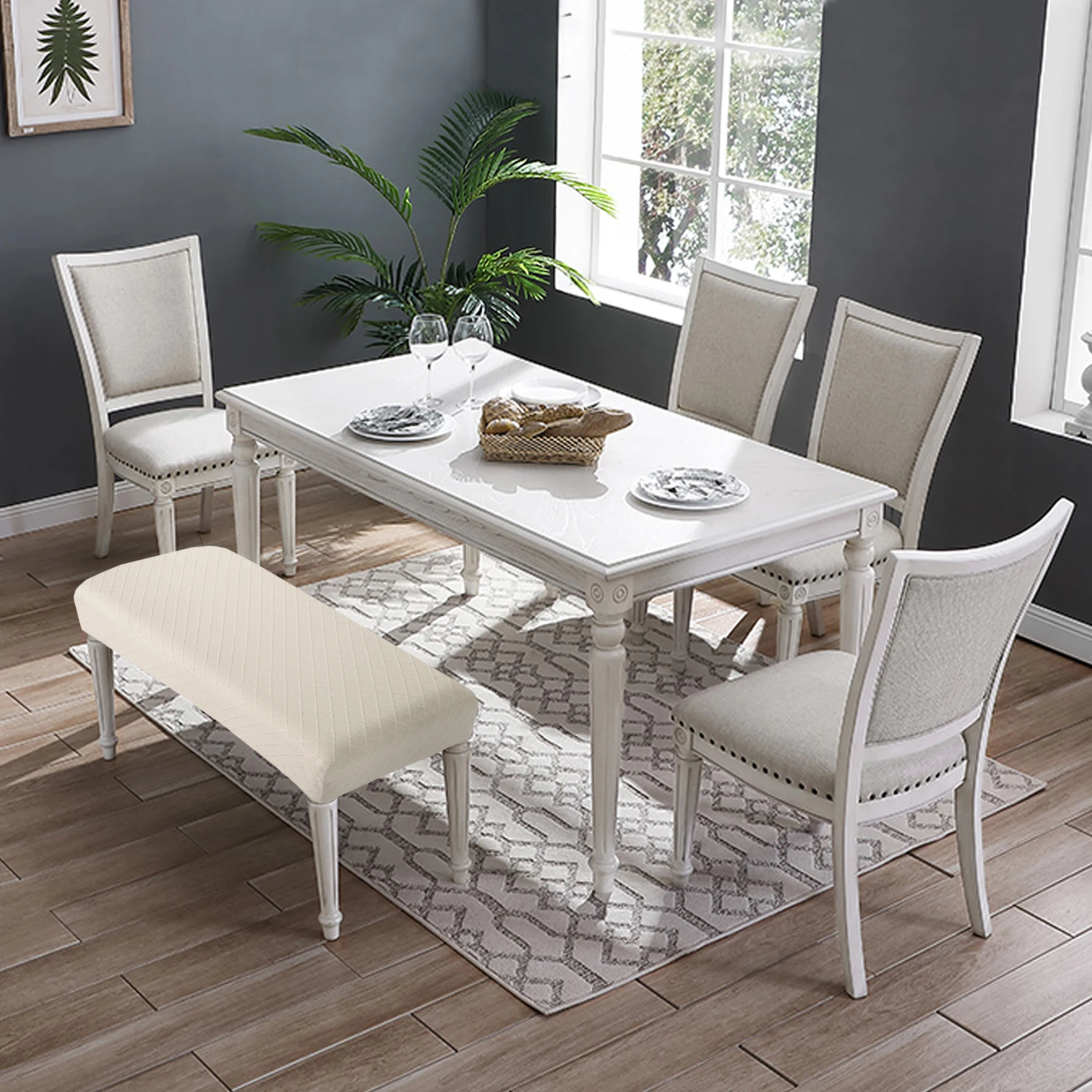 Protect your dining room bench from stains, spills, grime, and wear and tear with this dining bench slipcovers; these bench slipcovers are great for dining bench in the kitchen, bedroom, dining room, restaurant, living room, hotel and more, like buy a new bench!