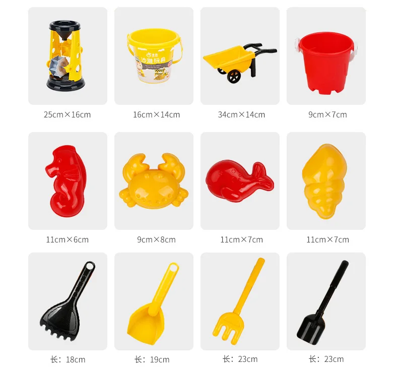 Choose Options Quick view Children's beach toys, playing with sand, digging an hourglass, playing with water, shovels, buckets, and kettles, ages 1-6 $20.85 - $24.22