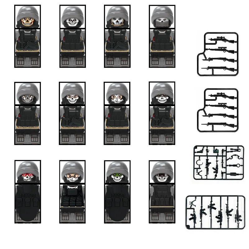 City Military Special Forces Ghost Mini Action Figures Building Blocks Soldiers Army MOC Helmet Weapons SWAT Bricks Toys Gifts