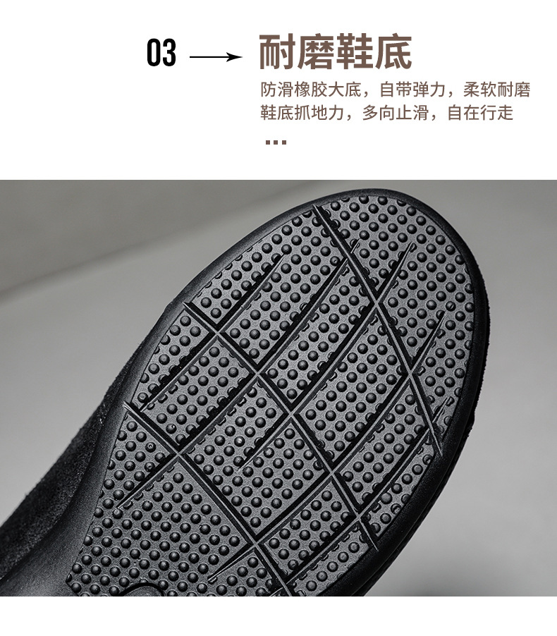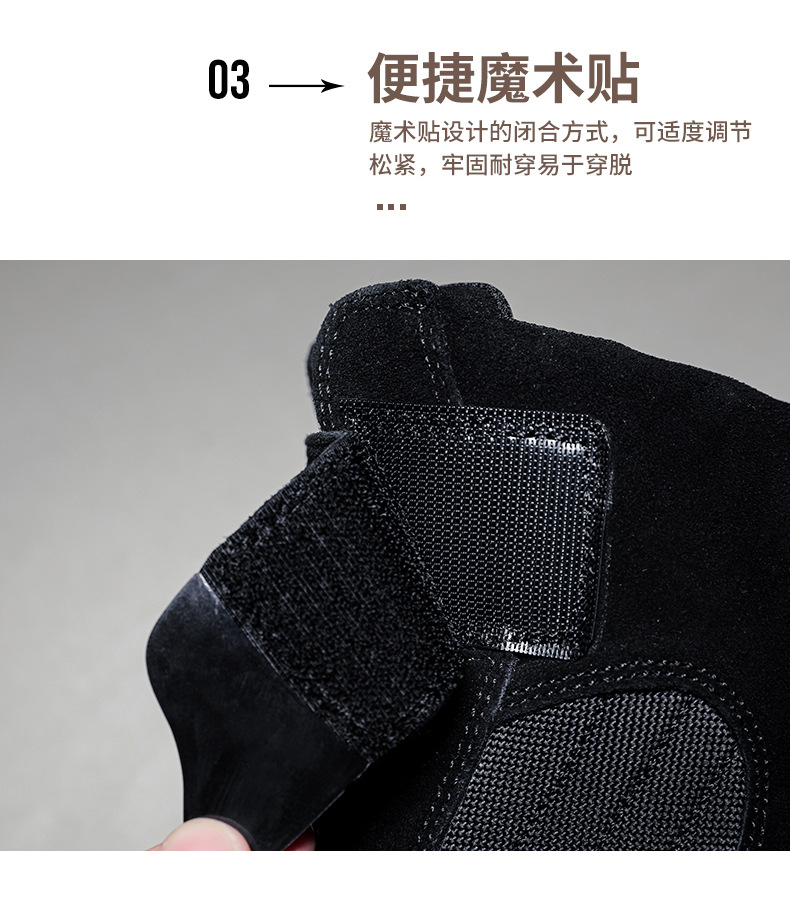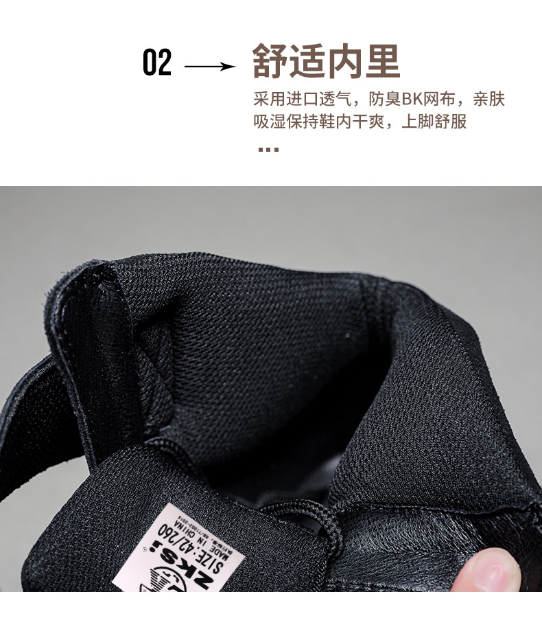 1. The flexible leather material is made of suede and breathable mesh fabric, which is wear-resistant, easy to handle, and tightly stitched to reinforce the shoe body