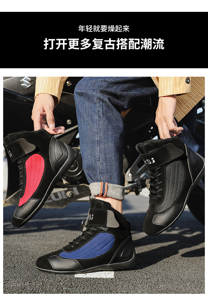 Classic Retro Motorcycle Shoes Black Racing Boots for Motorcyclist Breathable Motocross Riding Boots for Go-Kart shoes botas moto