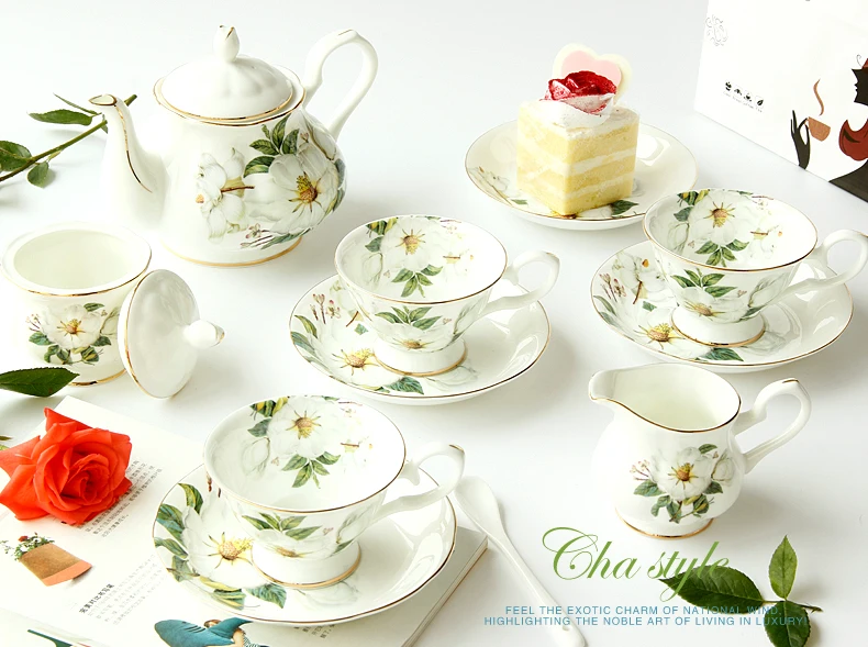 Coffeeware Bone China Tea Cup Set British Coffee Services Cups and Saucers Ceramic Teapot Sugar Bowl Milk Jar Items Suit Teaware