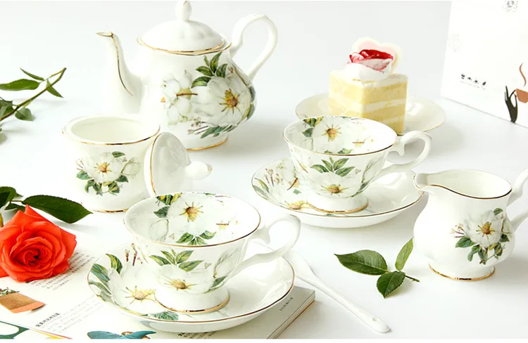 Coffeeware Bone China Tea Cup Set British Coffee Services Cups and Saucers Ceramic Teapot Sugar Bowl Milk Jar Items Suit Teaware