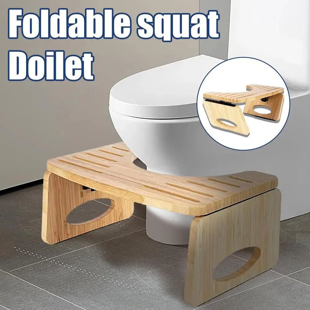 • Collapsible Toilet Squat Stool Bamboo Footstool Portable Step For Bathroom Tools Supplies