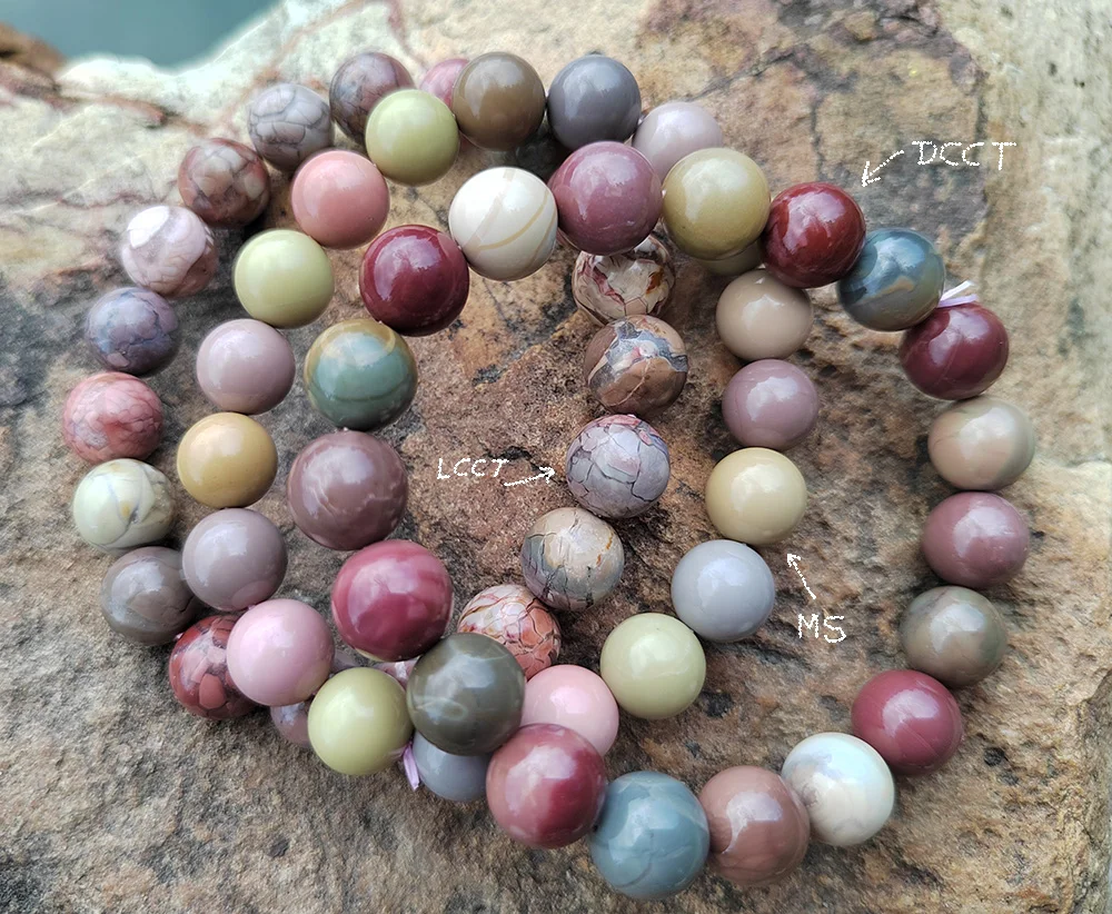 All the pictures, including the 6 main pictures, 3 SKU images, and three pictures above this line are only educative, telling you which one is what when the three kind of Alashan agate bracelets (MS, LCCT and DCCT) are put together.